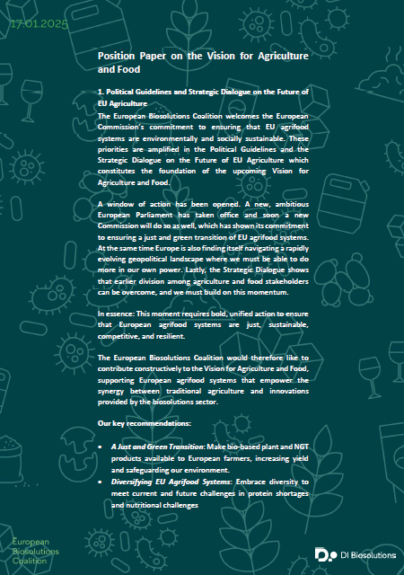 The European Biosolutions Coalition would therefore like to contribute constructively to the Vision for Agriculture and Food, supporting European agrifood systems that empower the synergy between traditional agriculture and innovations provided by the biosolutions sector.